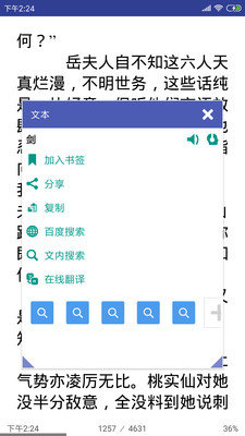 3这款工具具备文字转语音功能,支持有声化的阅读体验,选中任意文字即可快速调用百度搜索或翻译功能,也能兼容其他在线翻译服务,对英文文档阅读尤其友好。作为单机运行的应用,它堪称追更小说、阅读书籍的得力助手。