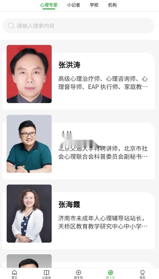 3.用户可以在育人号中心对推荐的学校、机构、心理专家等信息进行查看。