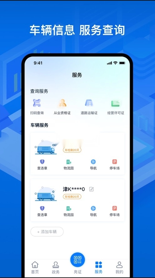 运证通是专业的道路运输管理服务软件,使用方法简便。这里设有道路运输证、经营许可证、从业资格证专区,可随时办理电子证照,畅行无阻。还提供违章查询、货车导航服务,更有政务服务,多方面管理,安装便捷。