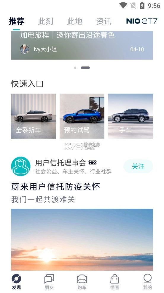 1. 社区用户能够全方位知悉蔚来汽车的最新消息,领略车主真切的用车感受,参与丰富多样的社区活动,收获高品质社交,营造更惬意的生活模式。