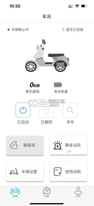 电动车应用,软件可以帮助用户手机和电动车连接,实现远程控制开锁关锁,远程点火,防盗定位等功能服务,可以给予用户更智慧骑行体验。