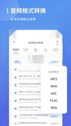 4.「音频格式转换」支持各种音频格式转换,如MP3、WAV 、AAC、 FLAC、WMA、 M4A等音频转换。