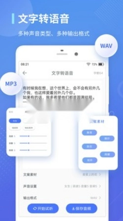 应用场景:1.办公会议:一键录音,轻松记录会议内容,快速整理纪要。2.校园演讲:把精彩的文字转为语音,可以在各类演讲台上任意切换角色,将文字蕴含的情感展现的淋漓尽致。3.新闻媒体:将采访的内容用录音保存下来,整理文稿,更加高效。