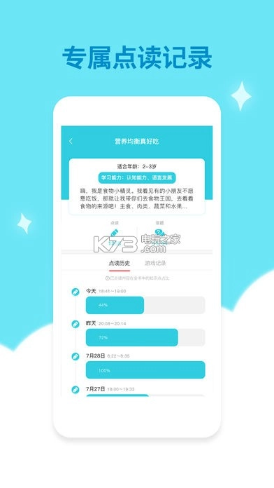 《机器岛早教》是一款面向广大家长推出的辅助孩子进行早教的学习类软件。借助这款软件,家长既能定制孩子的教育计划,又能实时了解孩子的教育进度与学习情况。软件还会生成学习周期记录以及大数据表,助力打造专属于你孩子的学习规律,让孩子在不知不觉间养成良好的学习习惯。