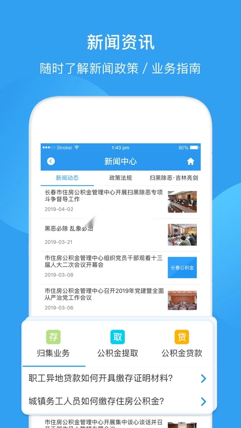 【公积金查询】随时随地查询您的住房、社保公积金账户的参保缴金状态,以及在城市所缴纳公积金的详细情况。长春公积金特色