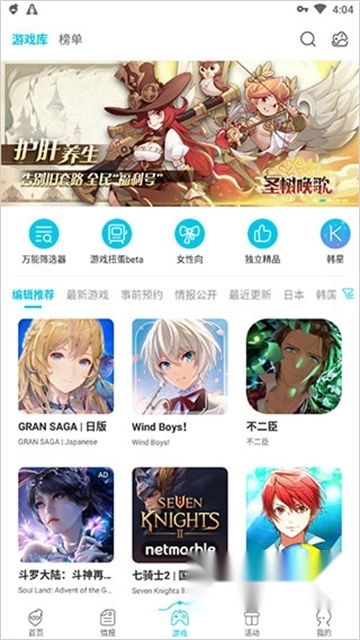 1、用户可以在这里看到很多不同的游戏信息,快速了解第一戏信息。