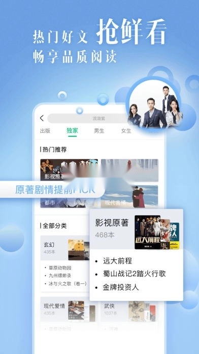 热播好剧《忽而今夏》、《远大前程》、《金牌投资人》、《蜀山战纪2踏行歌》等原著小说抢鲜看;
