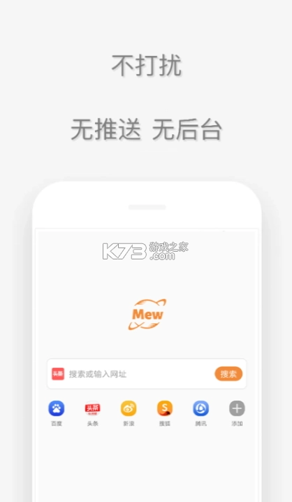 追求速度、注重隐私的浏览器,界面设计简洁,不增加无用功能,保障运行速度,不做账号、不获取多余权限,充分保障您的隐私,不做后台任务、不做任何推送,绝不打扰您,做纯粹的浏览器、做纯粹的工具!