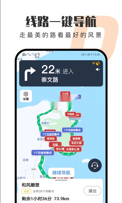 趣兜风软件是一款非常好用的手机导航便捷出行旅游服务,提供高效便捷旅游规划路线以及导航服务,自驾开始就能通过线路景点图文介绍,线路介绍等多种语音播报,实时收听周边经典真人语音讲解,让你们能够安全到达目的地,还能为你们导航出周边的停车场,超方便的随时出行旅游电子导航,需要的欢迎趣兜风软件使用试试呢。