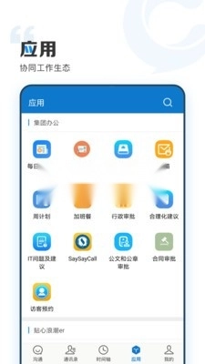 - 核心功能为组织内外的即时通讯功能,围绕此功能,配备一系列组织协同工具。