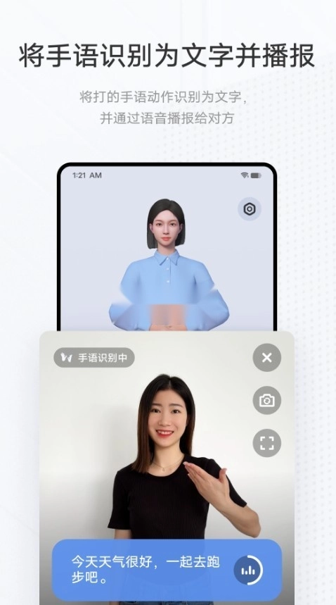 7、将语音实时转换成手语和文字,通过两种语言获取信息,让沟通没有任何压力