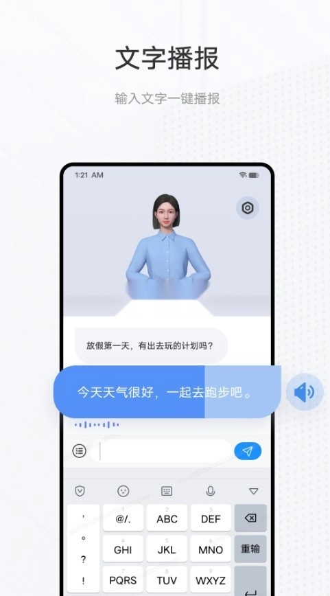 5、输入文字可以一键播报,然后生成手语动作,实现更加多样化的沟通模式