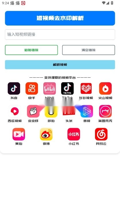 安卓手机专用的集合软件,其中的功能都是免费使用的,得到的实用性很强,简洁的页面让你一目了然,包含网盘链接解析,短视频解析,去水印和图床等功能,只要点击即可开启,运行的时候也不会影响其他的软件。