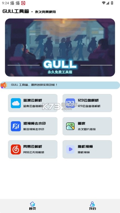 多功能工具箱,支持网易云无损解析以及蓝凑云、123云盘解析,还可以提取抖音、快的、b站、火山视频、西瓜视频等16家短视频平台的视频,提取操作非常简单,只要粘贴提取视频的链接即可,gull工具箱界面清爽,没有广告,而且安装包也小巧,不会占用我们的空间,出彩的是里面的功能都是可以免费使用的哦。