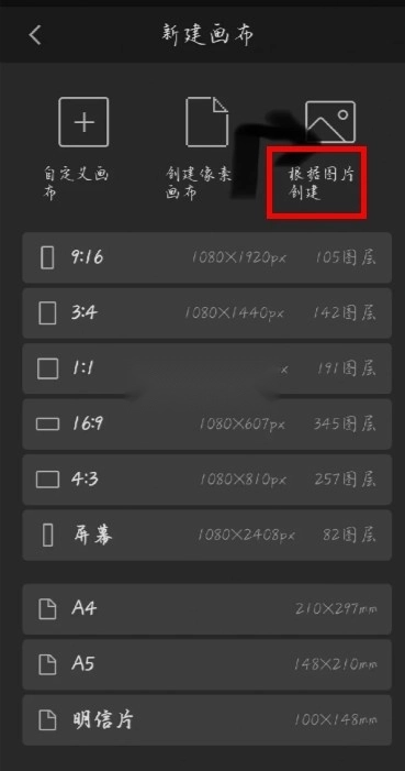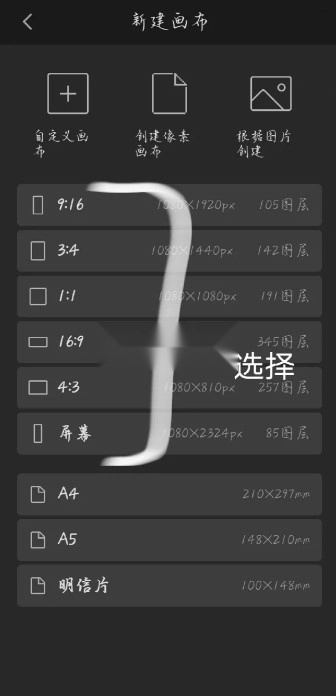 2.这里先选择画布的尺寸,点击;
