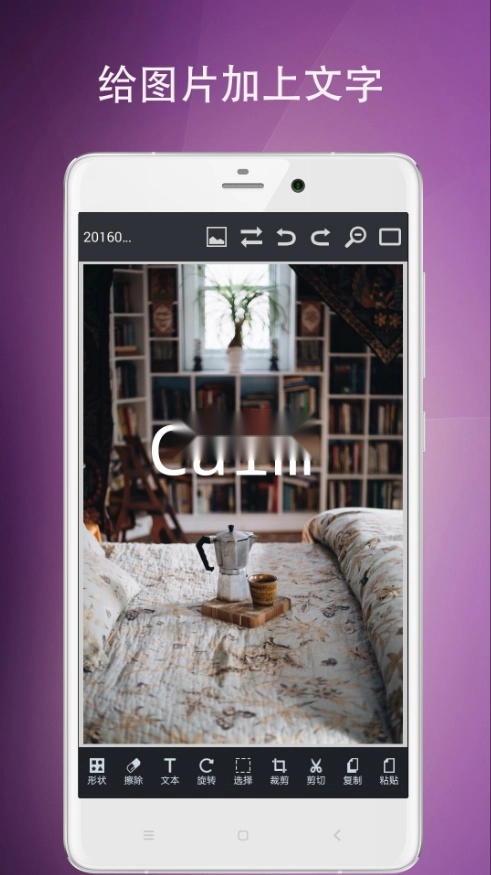 图片文字编辑功能:您可以给图片添加文字,并对文字的位置、大小、颜色、风格(粗体、斜体、下划线)进行编辑。同时,您还可以自定义字体,只需要将ttf文件添加到主sd卡的PowerEdit/fonts目录中。这样,您可以给图片添加注释,或者创建图文并茂的图片。