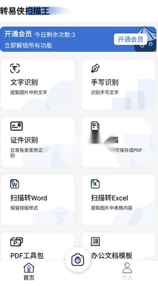 1、在本站安装好转易侠扫描王后,可以看到利用拥有文字识别、手写识别、证件识别、文稿扫描等功能。
