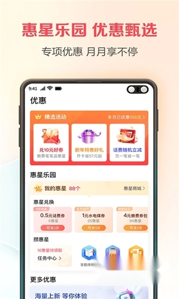 电信话费充值,每笔都能立享优惠。每周五福利升级,有满10减15、满10减3活动,不过名额有限,先到先得哦。
