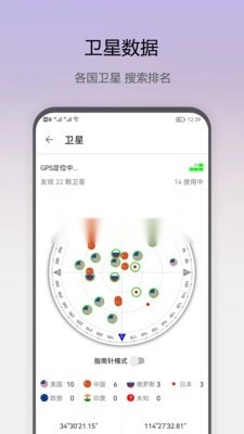 - 实时查看坐标、海拔、地址、速度、卫星位置及可用数量。
