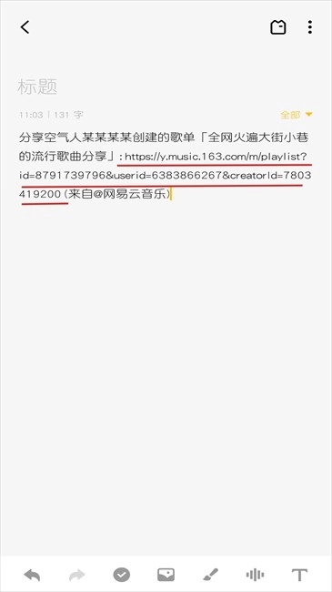 3.将连接粘贴到其它可以显示文本的软件中,只需要复制纯链接即可,不要带任何附带的中文
