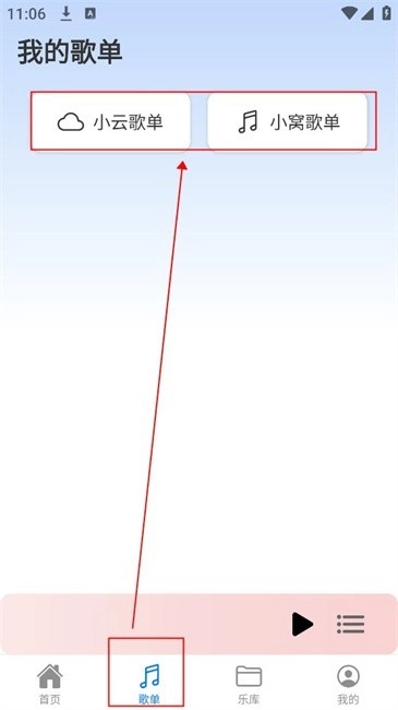 4.接着打开青听音乐,点击【歌单】选择“小云歌单”或是“小窝歌单”