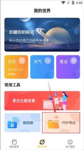 2、在我的世界页面上方点开珍藏温冲你的秘密。
