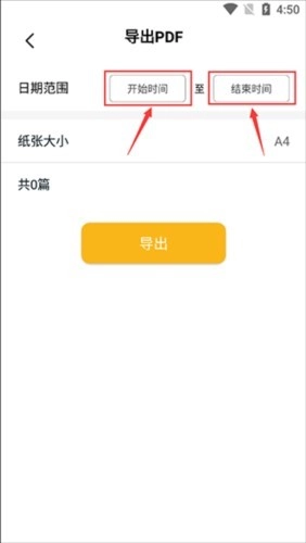 4、选择开始及结束时间后,点击下方的导出按钮。