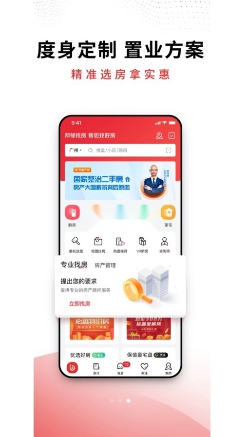 《邦邻找房》是合富辉煌集团推出的一站式购房服务平台,为购房者提供最贴近市场的动态资讯,第一时间发布可售房源及其优惠信息,并涵盖房屋买卖、置换等全流程相关服务。