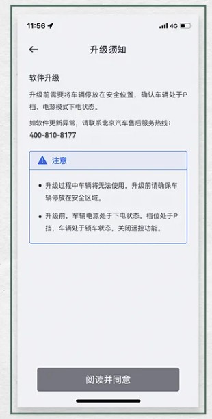 5点击阅读并同意进入升级进度条完成升级