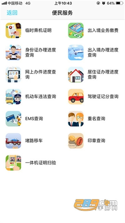 1、政务服务大厅:为市民提供网上办事服务,涵盖“户籍、身份证、居住证、交通管理、监管、治安、禁毒、网络安全、法律服务、巡查、信访、境外非政府组织”等多项办事业务;同时开设“申报”功能,帮助市民浏览办事指南信息。