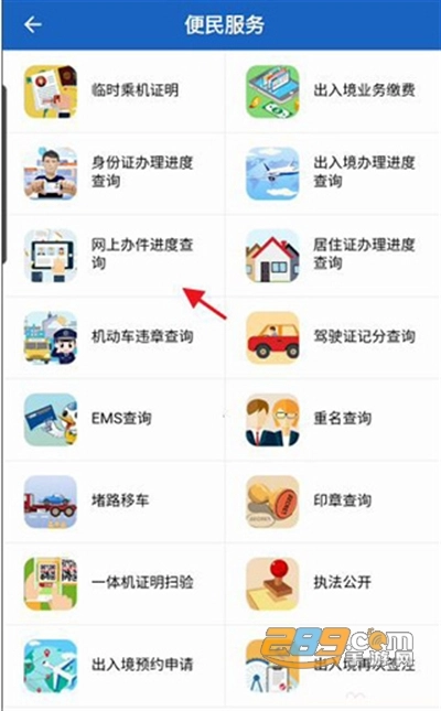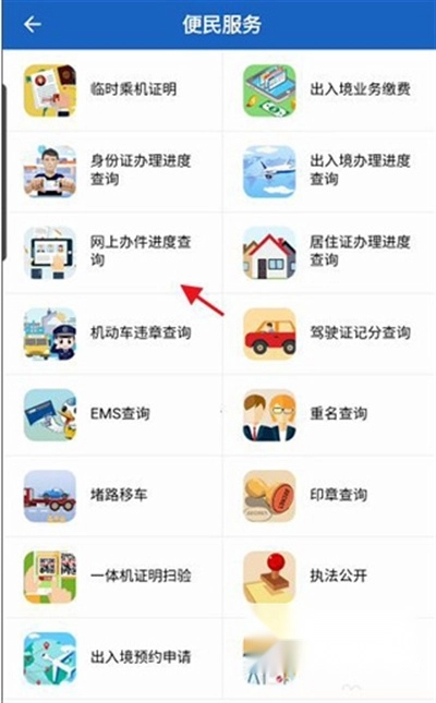 5、进入便民服务,找到下方的网上办件进度查询,点击网上办件进度查询进入;