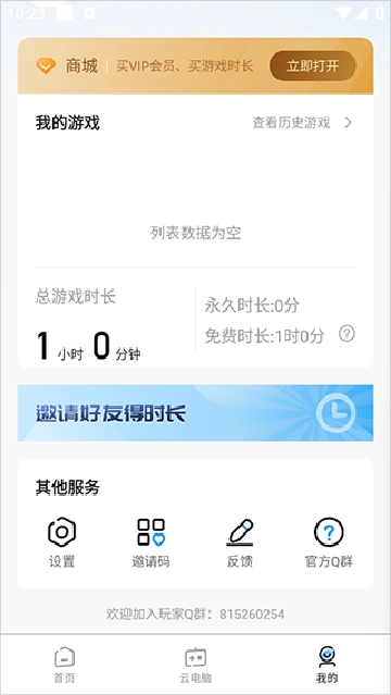 在应用的【我的】页面中点击【邀请好友得时长】