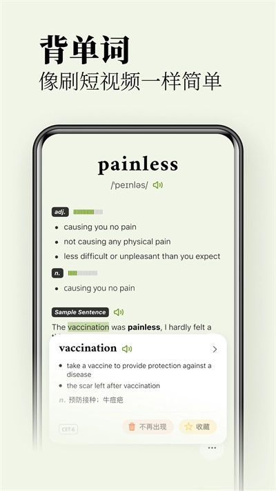 无痛单词,这是一款极具用户友好性且充满趣味的单词记忆软件,它为用户打造了通过卡片来记忆单词的独特方式。软件涵盖单词定义、用法规则以及各类记忆算法,能够依据用户的实际情况,提供适配的记忆方法,助力用户实现事半功倍的记忆效果。要是你有这方面需求,那就赶紧行动起来吧!