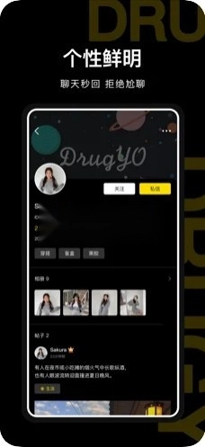 《Drug药最新版》是一款交友类软件。年轻人向来热衷于追求个性,而这款软件主打的正是个性社交。在软件里,你能够定制个人的个性与爱好,进而进入不同的社区及版块,与志同道合的朋友们一同畅享别具一格的交友乐趣。