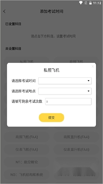 2、接着点击下方的“添加考试时间”,然后设置你要考的科目。