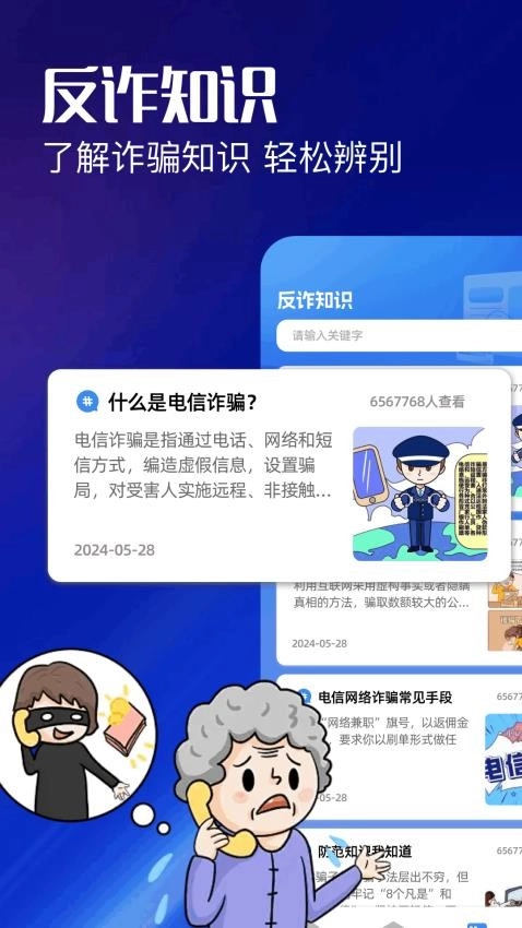 用户能够在任何时候查看反诈知识,了解更多诈骗手段,增强防范意识。