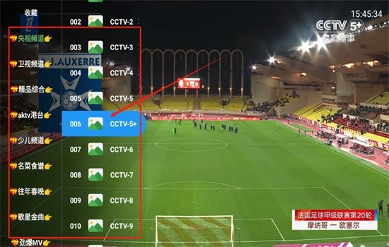 3、点击左侧在菜单栏选择自己想看的频道,点击切换即可