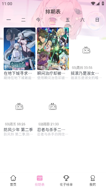 4.每天都会有排期表显示,能够知晓当天的番剧更新情况。