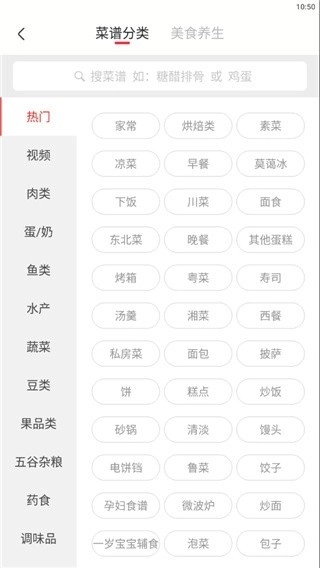 2、然后需要在菜谱分类里面找到你想要做的菜,也可以搜菜谱。