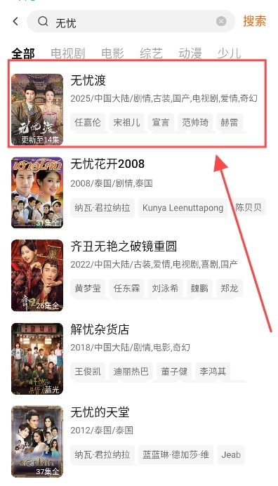2、找到想看的影片后点击影片封面进入