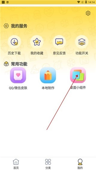 2、进入【我的】页面后,找到【桌面小组件】选项并点击进入。