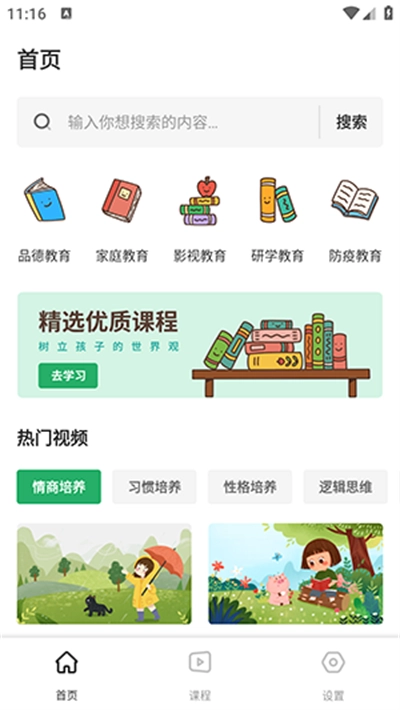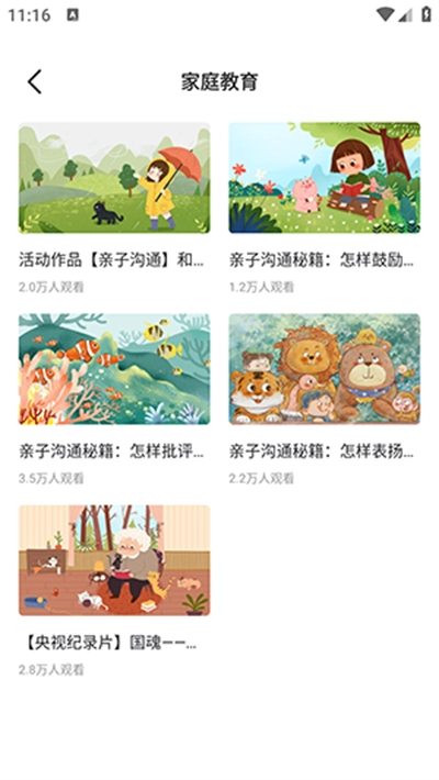3、可以看到家庭教育相关的课程资源内容,点击自己想要学习的就可以了;