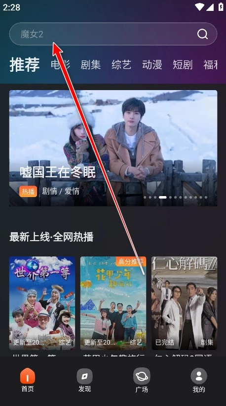 2、在搜索框输入我们想要看的电影名称,比如我的野蛮女友。