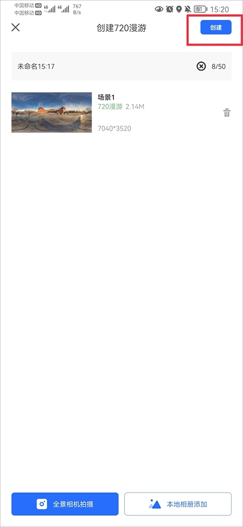 1、创建/编辑 720漫游作品,连接全景相机拍摄支持修改图片名称;