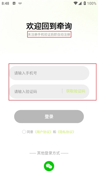 输入手机号获取验证码登录,未注册的登录会自动注册