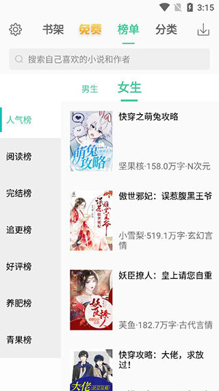 3大家可以在榜单里,按照自己平时常看的类别,挑选自己感兴趣的小说。