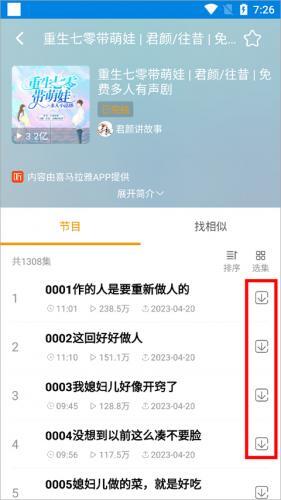 2、在打开的小说详情页面中点击需要的小说章节右侧的按钮(下图红色方框处)