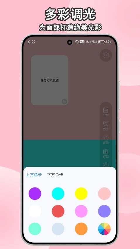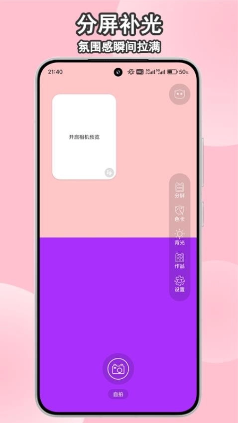 3、支持用户可以对独特的屏幕进行分屏补光,实现手机屏幕的补光设置。