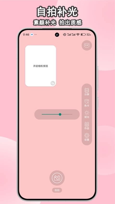 软件支持用户可以在线实现自拍补光,对自己的素颜可以在线补光。