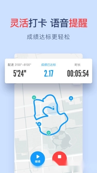 阳光跑灵活自由打卡,全程语音提醒,成绩达标更轻松;